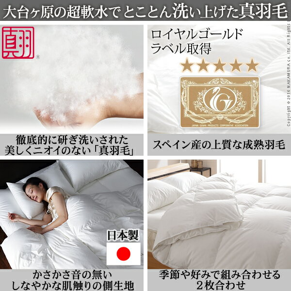 スペイン産ホワイトダック 真羽毛 2枚合わせ掛け布団 セミダブル ロングサイズ 掛布団 2枚合せ 羽毛布団 日本製 抗菌 防臭 国産